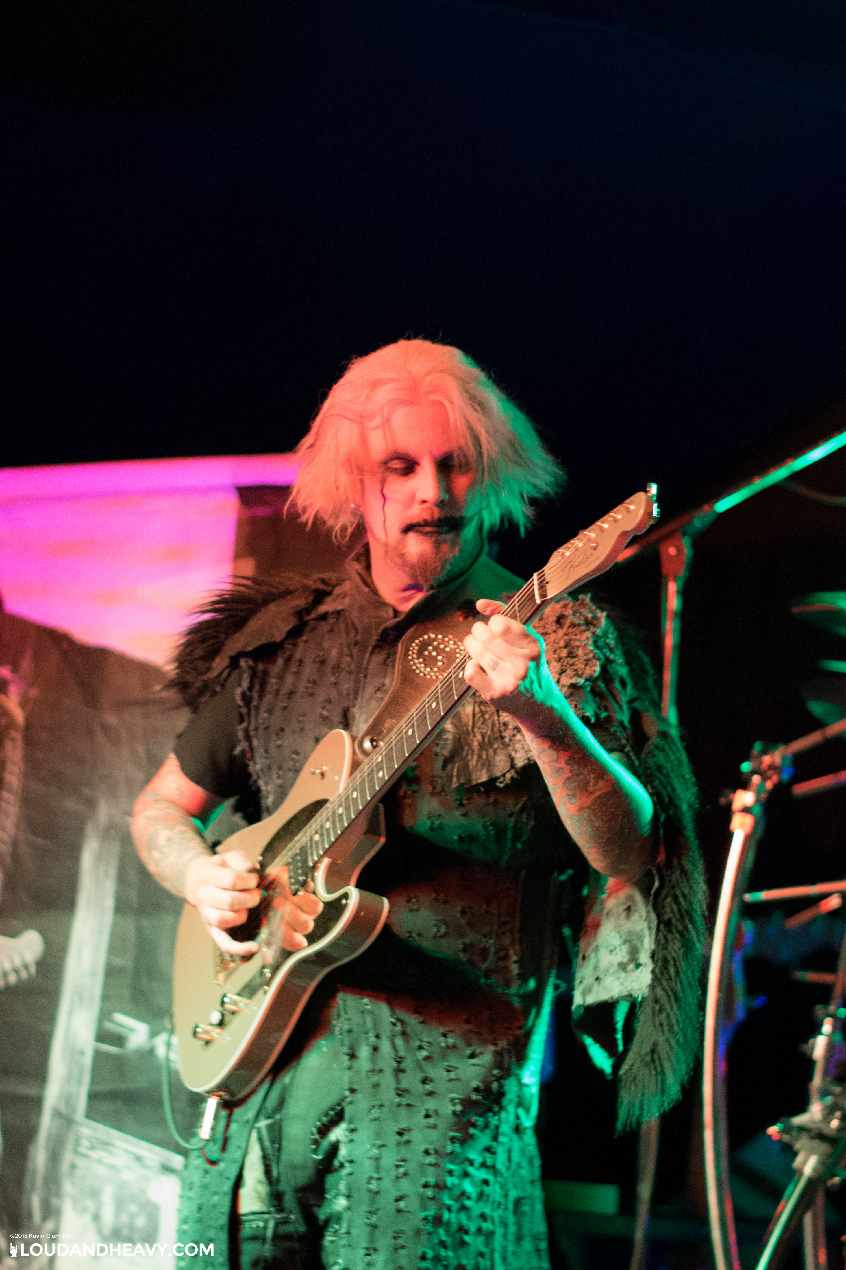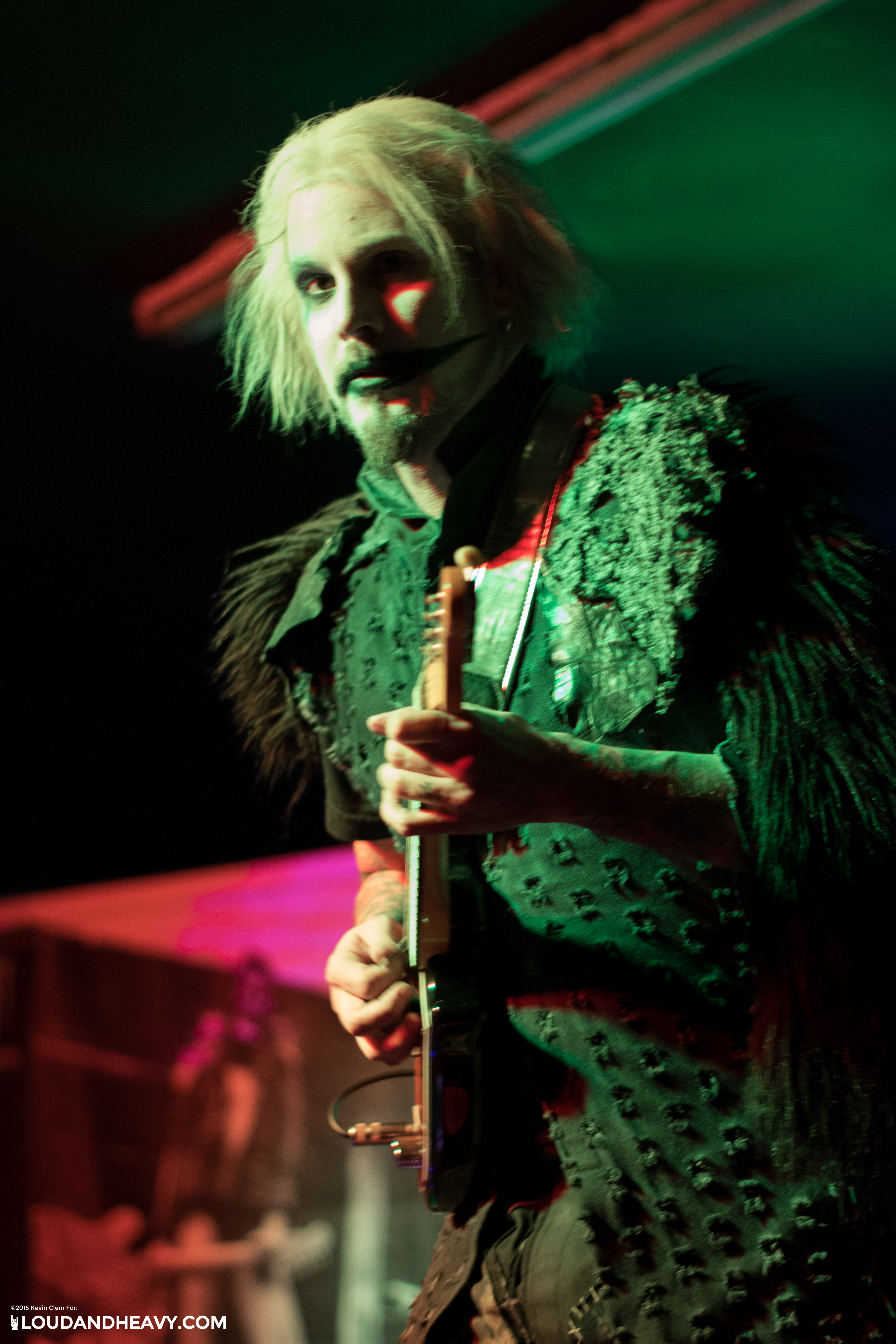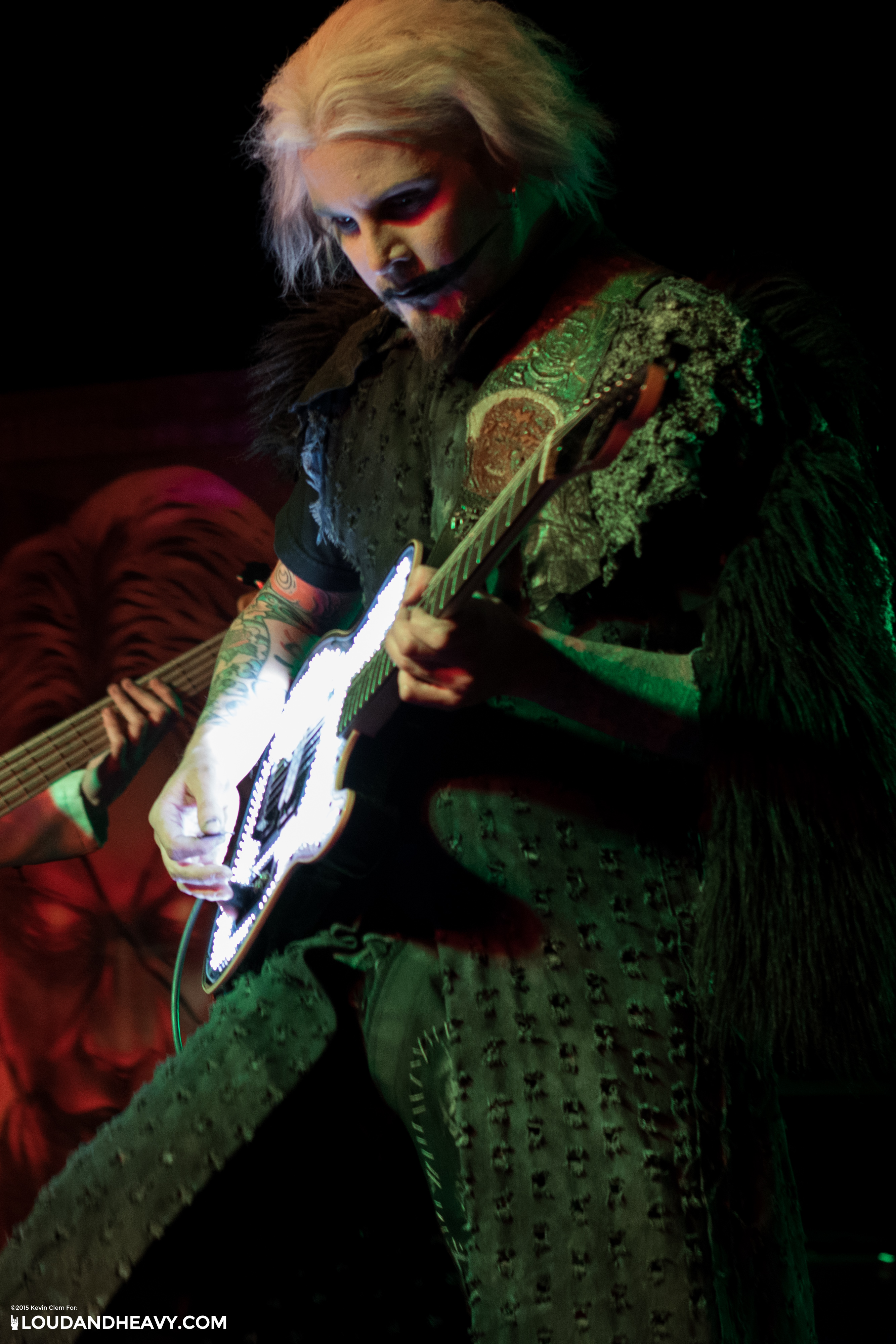 Now unlike his stage times spent with Zombie or Manson which rely heavily on the theatrical elements with the pyrotechnics and lights shows, John 5’s stage show was scaled back and stripped down to its most basic elements. Sure there was a dancing Frankenstein at one point but overall the focus point was simple, let John and guitar be the show. And what a show we were given, his setlist was career spanning covering everything from his newer jams like This is my Rifle and the Portrait of Sidney Sloan to the older ones such a Feisty Cadavers and Behind the Nut Love, even throwing in his cover of Michael Jackson’s Beat It and closing the night out on a musical medley serving as a journey through some of the most recognizable guitar riffs of all time.