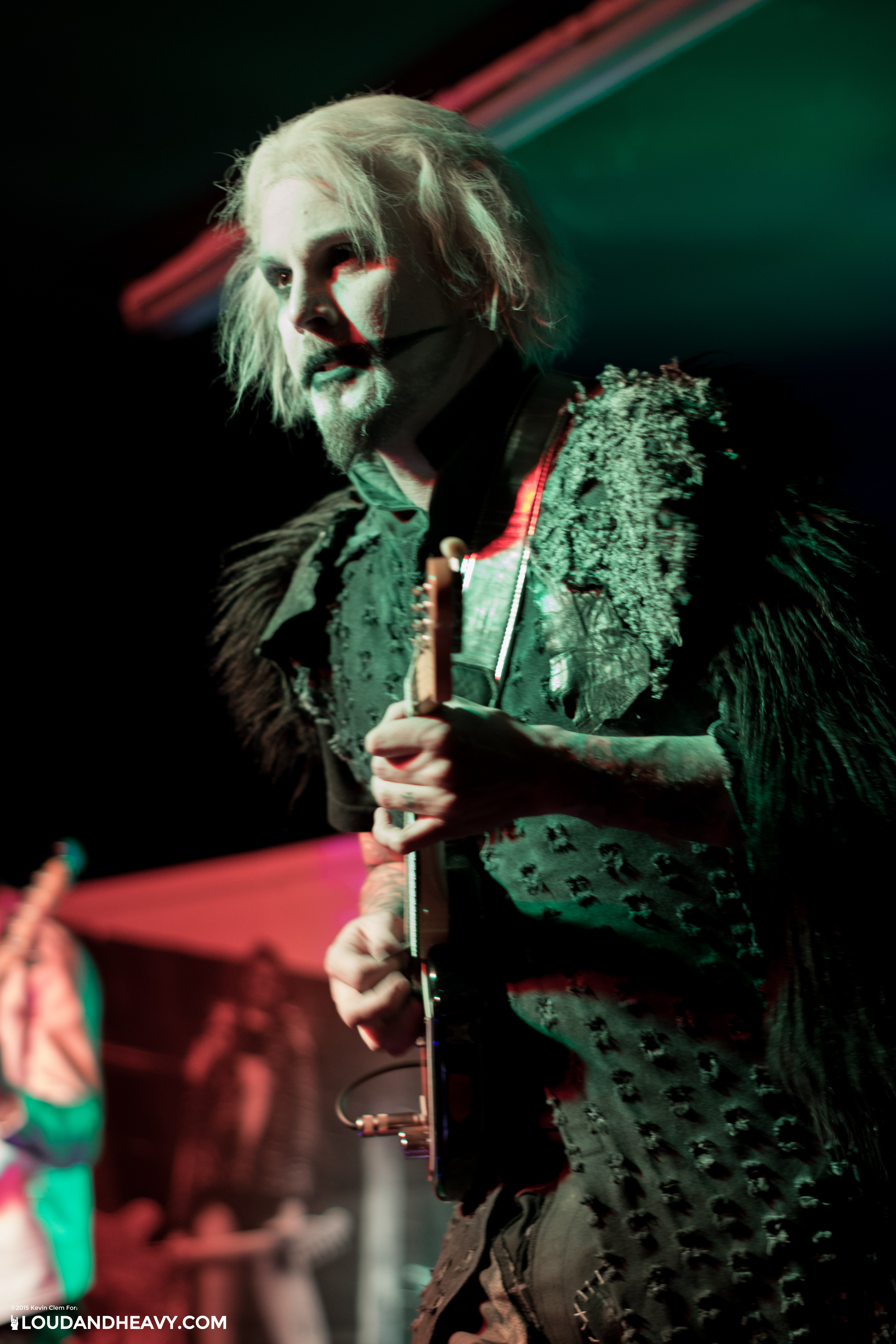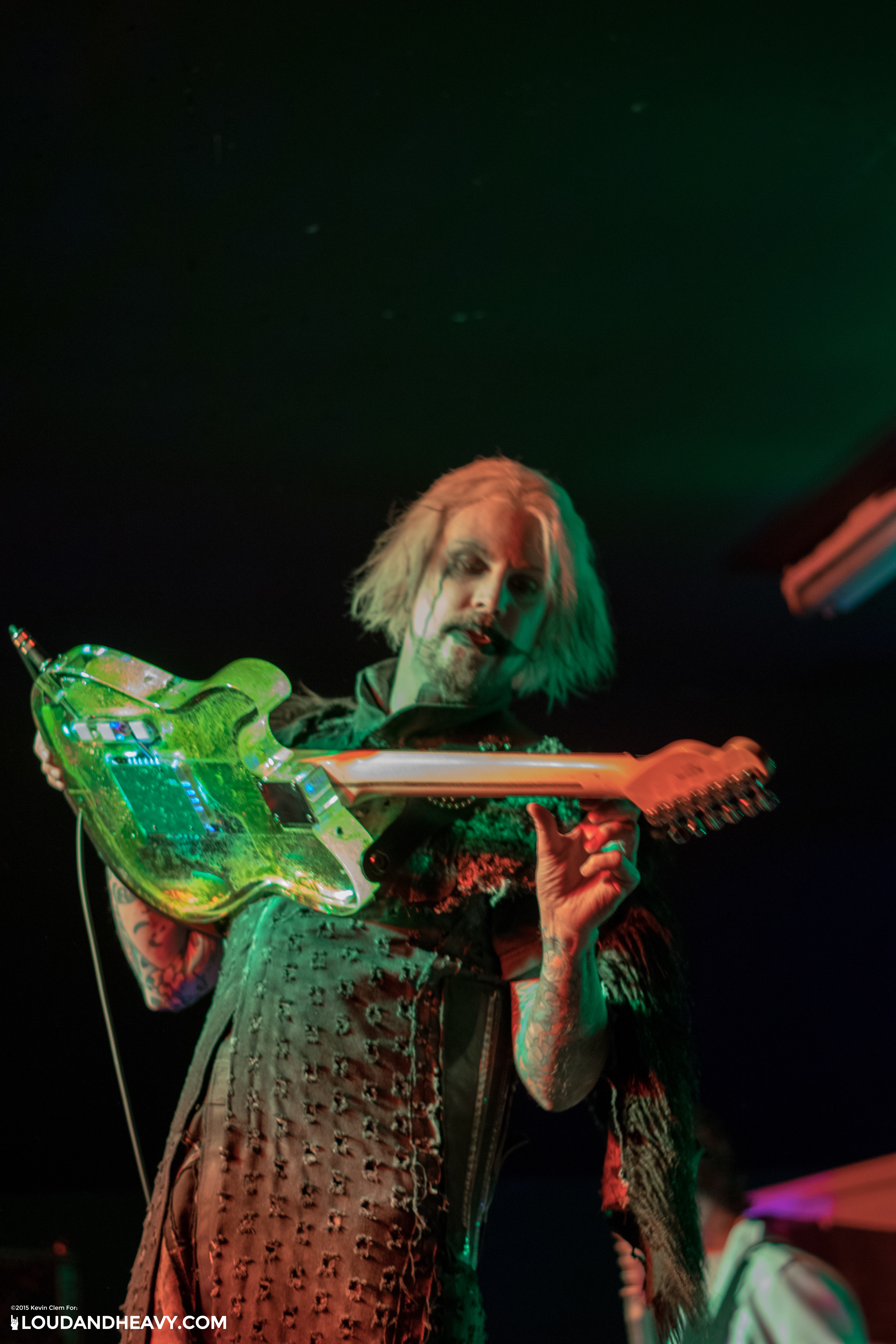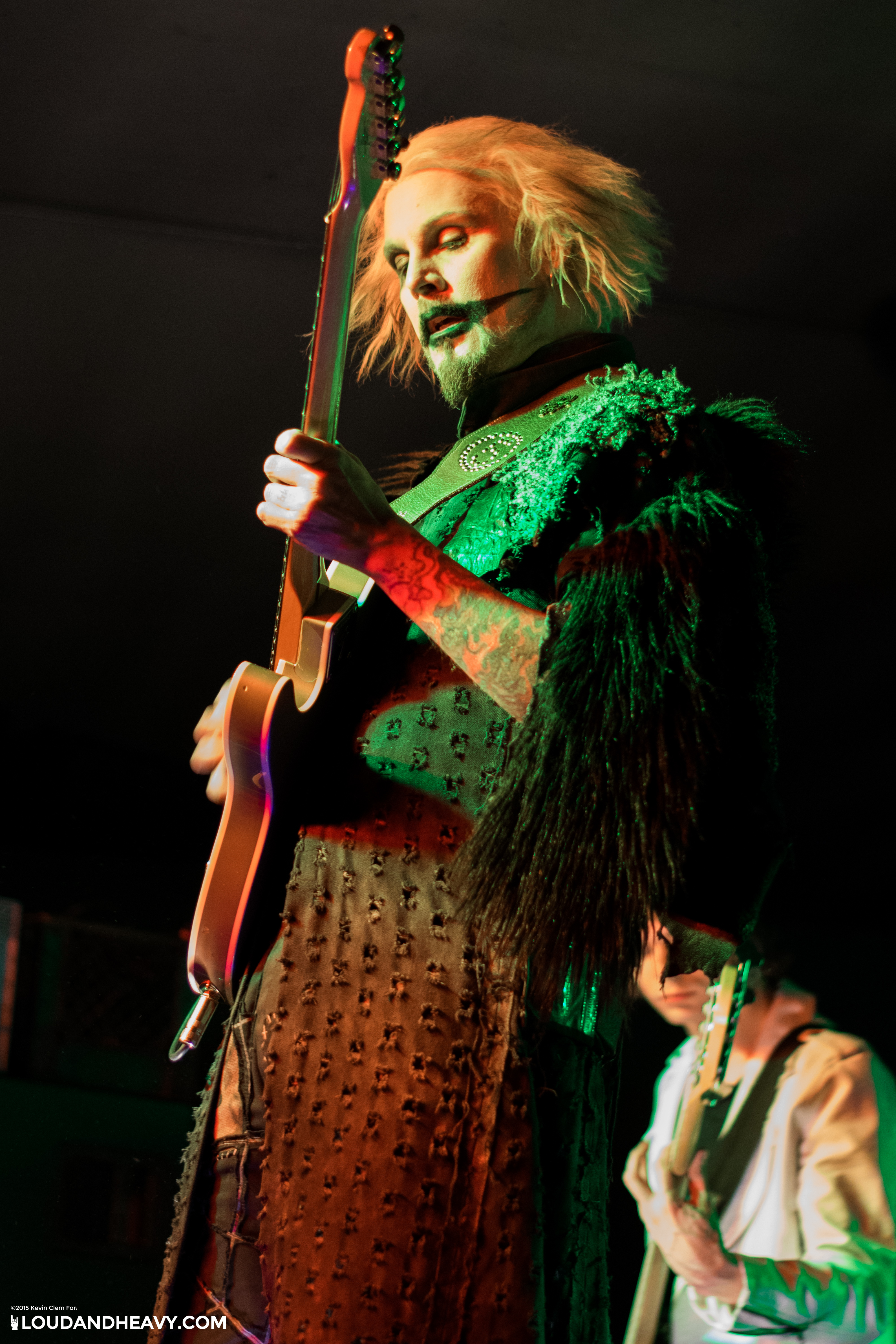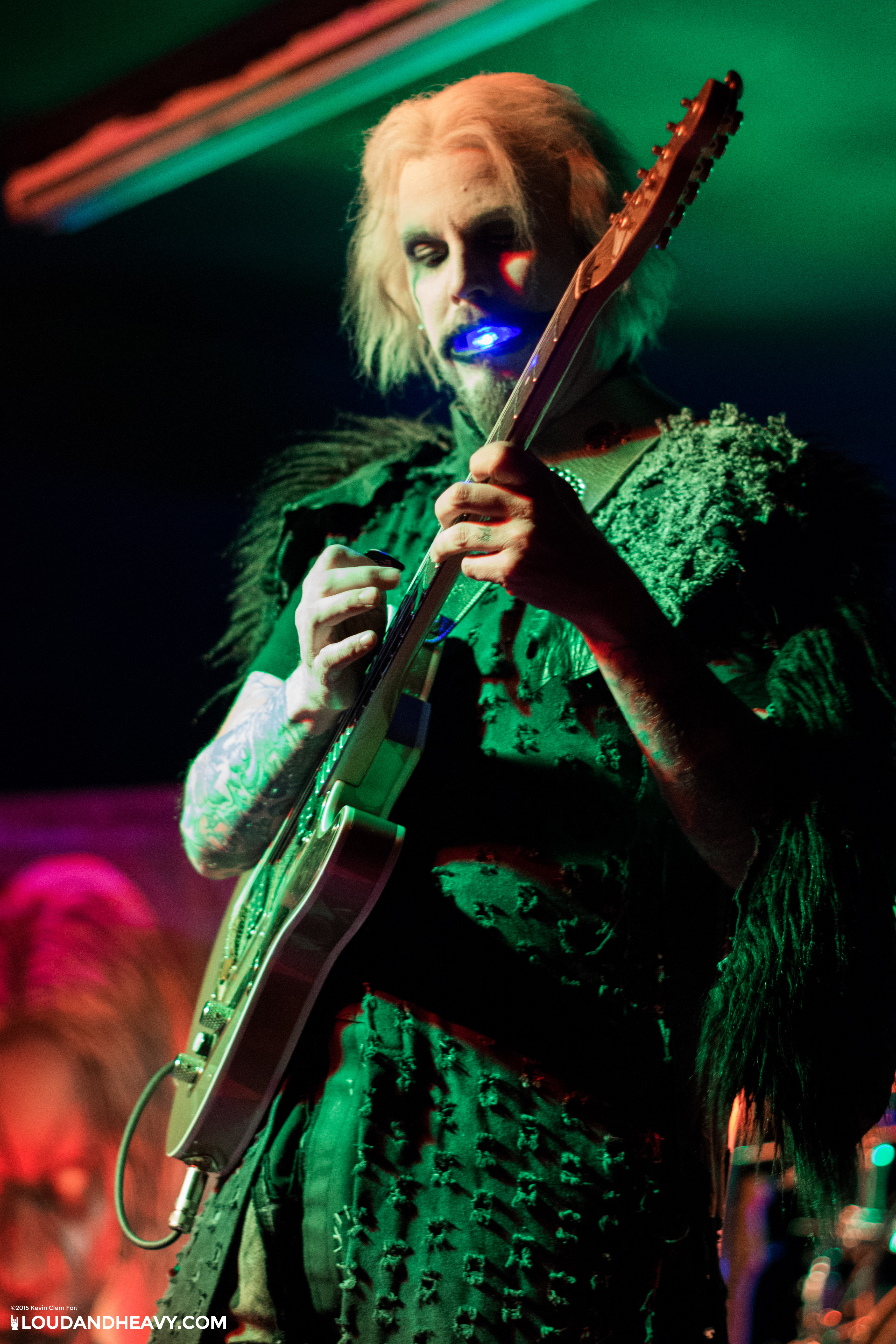Now unlike his stage times spent with Zombie or Manson which rely heavily on the theatrical elements with the pyrotechnics and lights shows, John 5’s stage show was scaled back and stripped down to its most basic elements. Sure there was a dancing Frankenstein at one point but overall the focus point was simple, let John and guitar be the show. And what a show we were given, his setlist was career spanning covering everything from his newer jams like This is my Rifle and the Portrait of Sidney Sloan to the older ones such a Feisty Cadavers and Behind the Nut Love, even throwing in his cover of Michael Jackson’s Beat It and closing the night out on a musical medley serving as a journey through some of the most recognizable guitar riffs of all time.