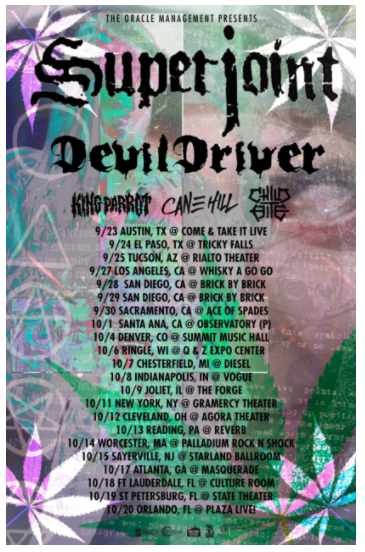 Kicking off this fall is the Broken Bones Tour headlined by Devildriver and Superjoint, with support coming from King Parrot, Cane Hill and Child Bite. Starting September 23rd in Austin, TX and running till October 20th in Orlando, FL. Check out the complete list of dates below for what is set to be one of the heaviest and grooviest tours this year.