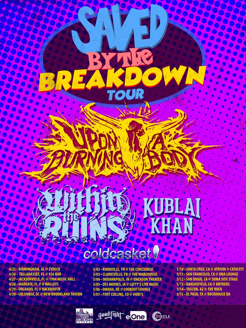San Antonio’s Upon A Burning Body has announced a 18 date set of headlining dates for their “Saved By The Breakdown” tour in support of their latest album Straight From The Barrio. Kicking off 04/25 in Birmingham, AL and winding all the way back to their home state of Texas on 05/15. Joining Upon A Burning Body will be fellow breakdown masters Within The Ruins, Kublai Khan and Coldcasket. This lineup is stacked with heavy riifs and crunching breakdowns. Get your tickets starting this Friday 3/10.